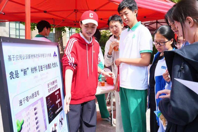 防蓝光材料的原理是什么?疏水材料是如何向荷叶学习的?仿生鲨鱼皮有哪些应用?9月25日,一场以“新材料科学”为主题的游园会在北京大学附属中学校园举行,来自北大附中集团校的同学们打造了16个各具特色的科普展台,将抽象的科学原理转化为可触、可感、有趣的互动体验。